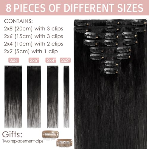 Silk-co 45cm Clip Capelli Veri Extension 8 Fasce Remy Hair Extension Clip Testa Piena 70g Capelli Umani 8 Pezzi - 1 Nero Lucente