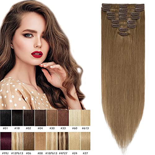 Silk-co 45cm Clip Capelli Veri Extension 8 Fasce Remy Hair Extension Clip Capelli Umani Lisci 70g Testa Piena - 6 Marrone Chiaro