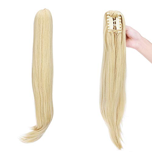 Silk-co 55cm Coda Clip Capelli Finti con Pinza Ponytail Hair Extension Clip Capelli Lisci Naturali Coda Sintetica-Dorato Mix Biondo Sbiancante