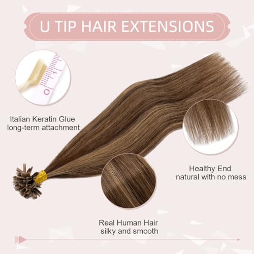 Silk-co 55cm Cheratina Extension Capelli Veri #4P27 Marrone Medio & Biondo Scuro 1g/Ciocche U Tip Remy Human Hair Extension Capelli Umani Lunghi con Keratina