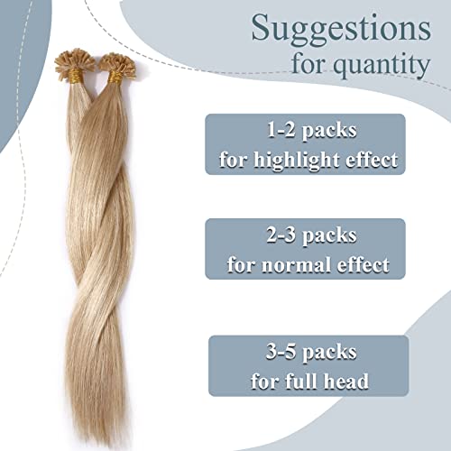 Silk-co 55cm Cheratina Extension Capelli Veri #24 Biondo Naturale 1g/Ciocche U Tip Remy Human Hair Extension Capelli Umani Lunghi con Keratina