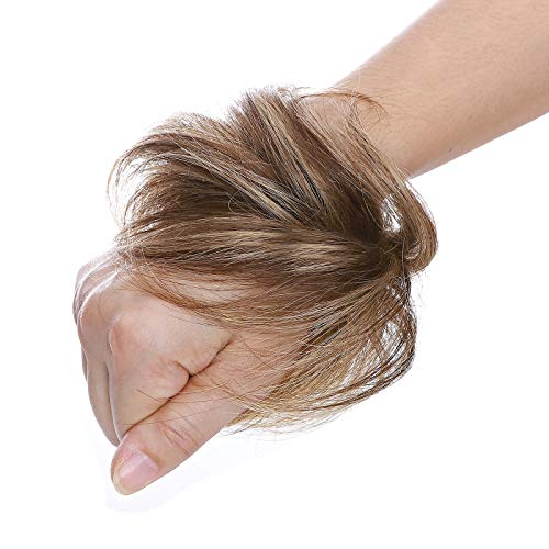 Silk-co Ciambella per Chignon Extension Capelli Veri Lisci Elastico Voluminoso Coda Magic Hair Bun Updo Crocchia 17g #4P27 Marrone Medio & Biondo Scuro