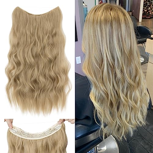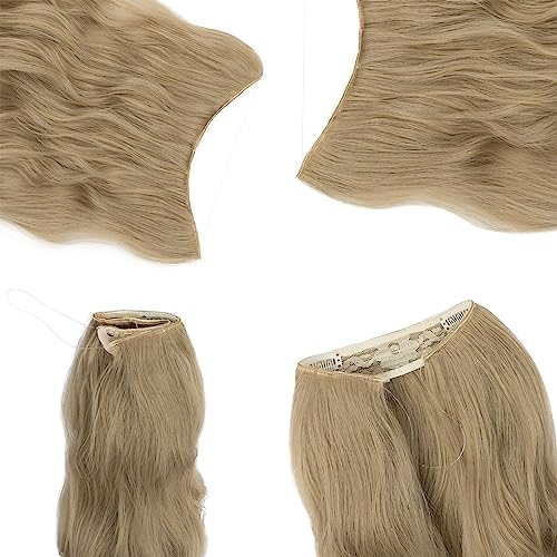Silk-co Estensioni dei capelli con filo, estensioni dei capelli sintetici, parrucchini lunghi ondulati con elastico e clip, estensioni dei capelli da donna regolabili, Biondo Cenere 50cm