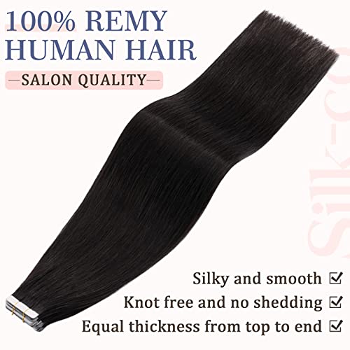Silk-co 50cm - Extension Capelli Veri con Biadesivo Tape in Extension 25g 10 Fasce Capelli Umani Remy Human Hair Capelli Adesive - 1B Nero Naturale
