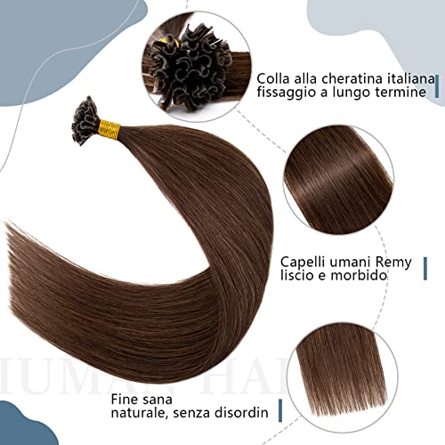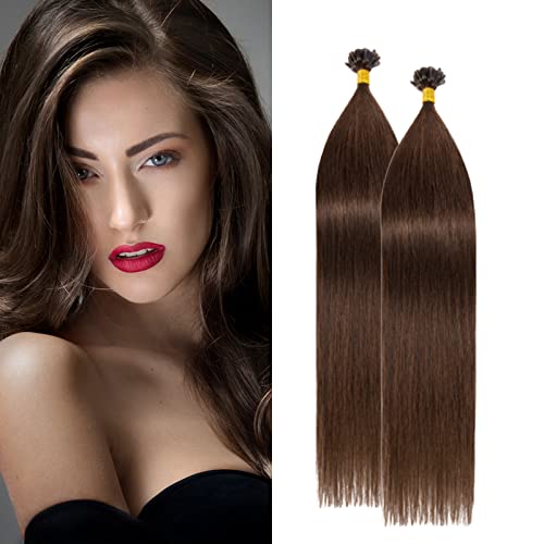Silk-co 45cm Extension Capelli Veri Cheratina 100 Ciocche #4 Marrone Cioccolato Capelli Umani Brasiliani 1g/ciocca U-Tip Bonding Remy Hair