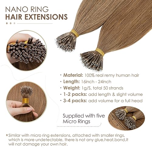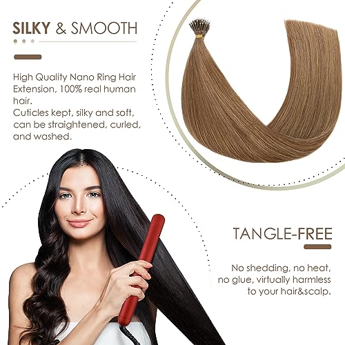 Silk-co 60cm - Nano Ring Extension Capelli Veri 1g * 50 Ciocche Capelli Umani Brasiliani Micro Extension - 6 Marrone Chiaro