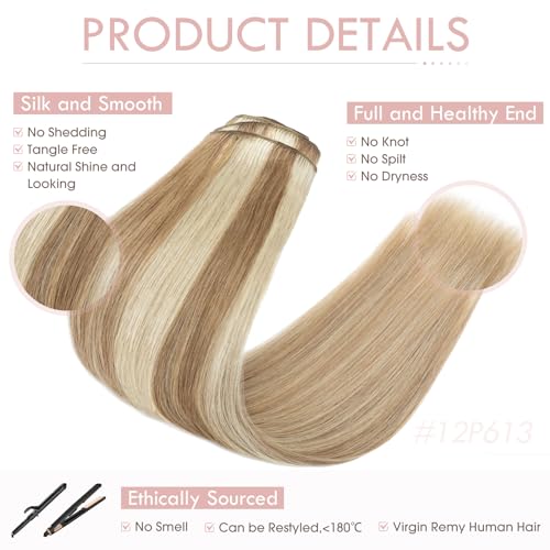 Silk-co Extension Clip Capelli Veri Double Weft 8 Fasce 110g Capelli Umani 100% Remy Human Hair 30cm - 12P613 Marrone Dorato & Biondo Sbiancante