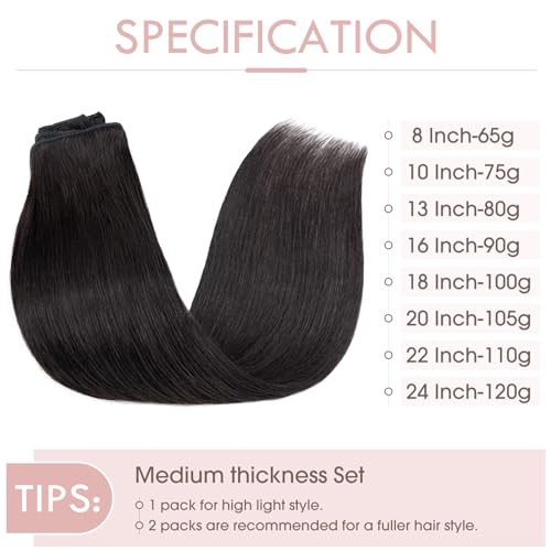 Silk-co 50cm Extension Clip Capelli Veri 8 Fasce #1B Nero Naturale Remy Human Hair Clip in Extension 105g Capelli Brasiliani Lisci 18 Clips