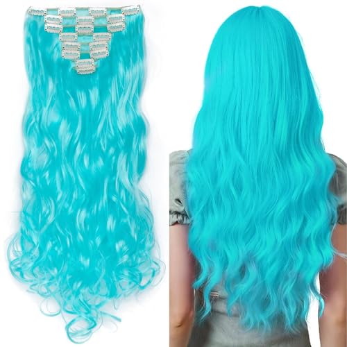 Silk-co Extension Capelli Clip 8 Fasce Full Head 60cm Extension Posticci per Capelli Finti Ricci Clip in Extension-Cielo Blu