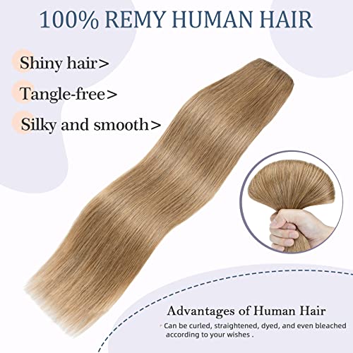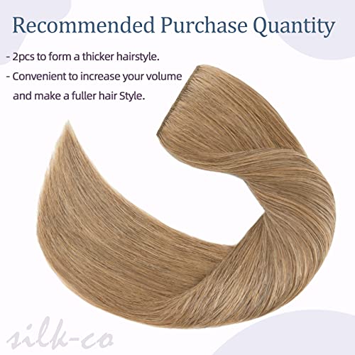 Silk-co Extension Capelli Veri Clip Fascia Unica #27 Biondo Scuro Double Weft 90g Capelli Umani Lisci 45cm Clip in Extension Remy Hair 3/4 Full Head