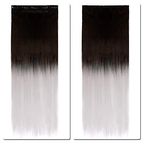 Silk-co Extension Clip Capelli Lisci Fascia Unica 5 Clips in Extension 3/4 Full Head Capelli Sintetici Lunghi 63cm-Nero Naturale a Grigio Argento