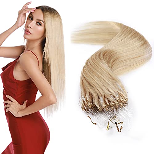 Silk-co 55cm - Extension Capelli Veri Microring 1 grammo Remy Hair Extension Anellini 50 ciocche Capelli Umani Lisci - 613 Biondo Sbiancante