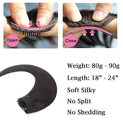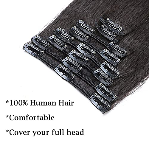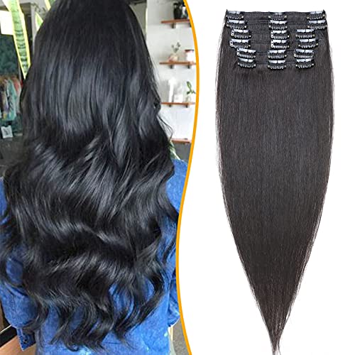 Silk-co Extension Clip Capelli Veri 8 Pezzi 45cm Hair Extension Clip Human Hair Capelli Lisci Clip 80g - 1B Nero Naturale