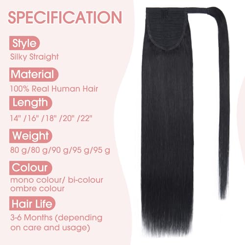 Silk-co 40cm - Extension Coda Capelli Veri #1 Nero Scuro Capelli Brasiliani Naturali 80g Remy Human Hair Ponytail Clip Extension