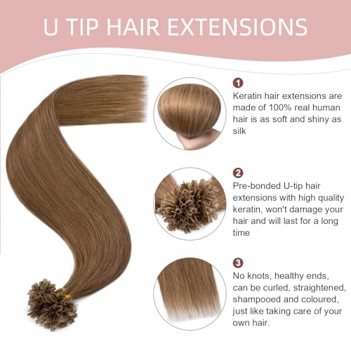 Silk-co Extension Cheratina Capelli Veri 100 Ciocche #6 Marrone Chiaro U Tip Keratina Hair Extension 40cm Capelli Umani 0.5g/ciocca