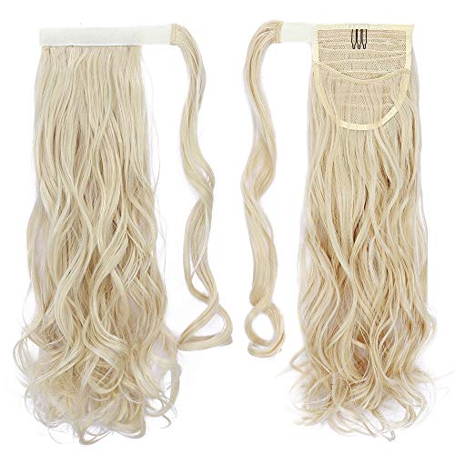 Silk-co 45cm Coda Finta Capelli Mossi Clip in Extension Ponytail Capelli Finti Naurali Coda di Cavallo-Biondo Chiarissimo