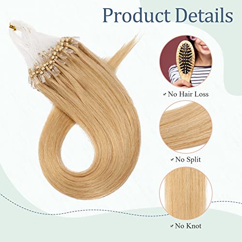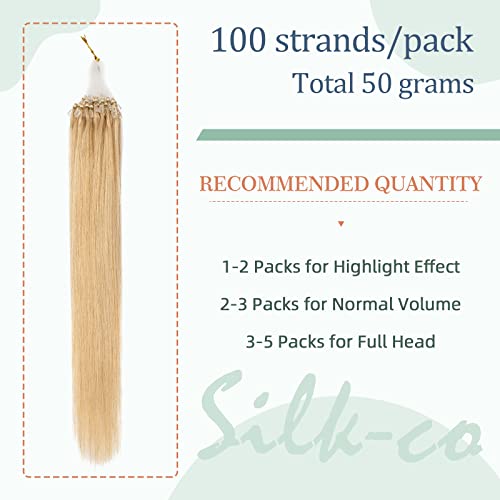 Silk-co Microring Extension Capelli Veri 100 Ciocche 50g #24 Biondo Naturale Extension Capelli Umani 45cm Microring Anelli Remy Human Hair