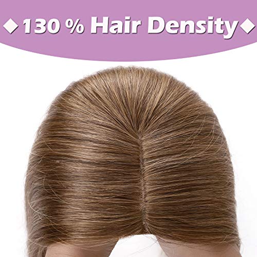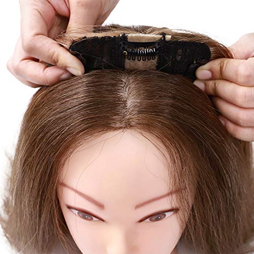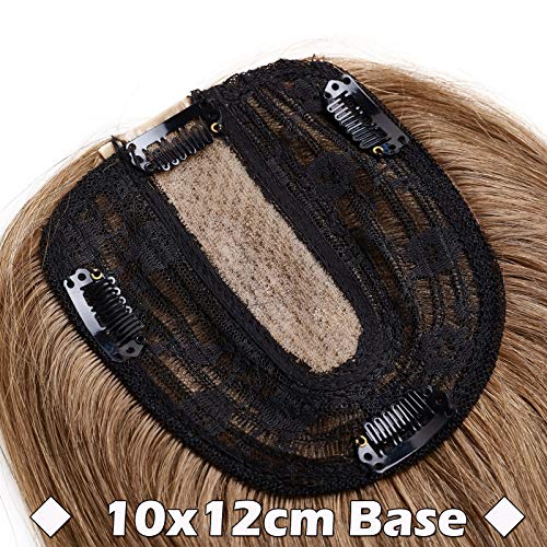Silk-co Topper Capelli Veri 10x12cm Extension Clip Toupet Capelli Donna Veri Human Hair Topper 15cm-27g #6 Marrone Chiaro