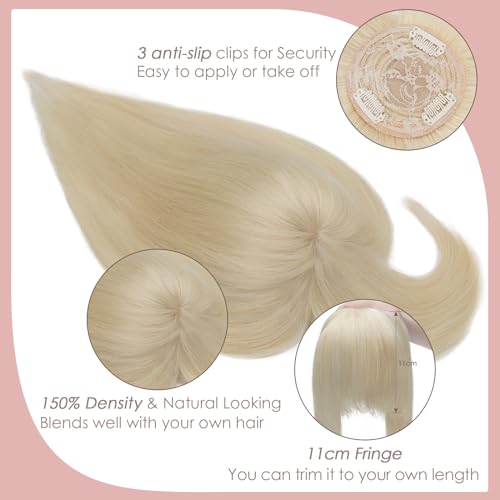 Silk-co Hair Topper Capelli Veri Donna Clip in Extension Toupet Uomo Capelli Umani Brasiliani 45 cm (45 g) #60 Biondo Platino