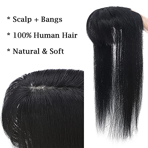 Silk-co Hair Topper Capelli Veri con Frangia Clip Extension Capelli Umani 40g 10 * 12cm Soft Base Toupet Donna Frangetta 30cm - 1 Nero Scuro