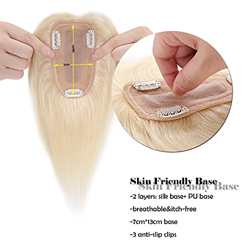 Silk-co Toupet Capelli Veri con Frangia per Donna #60 Biondo Platino Clip in Hair Topper Capelli Veri Extension 33g Capelli Umani 25cm