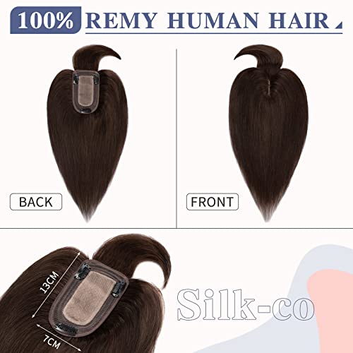 Silk-co Toupet Veri Capelli Umani con Frangia Clip Extension 38g Toupee Capelli Donna Veri Silk Base 30cm - 2 Marrone Scuro
