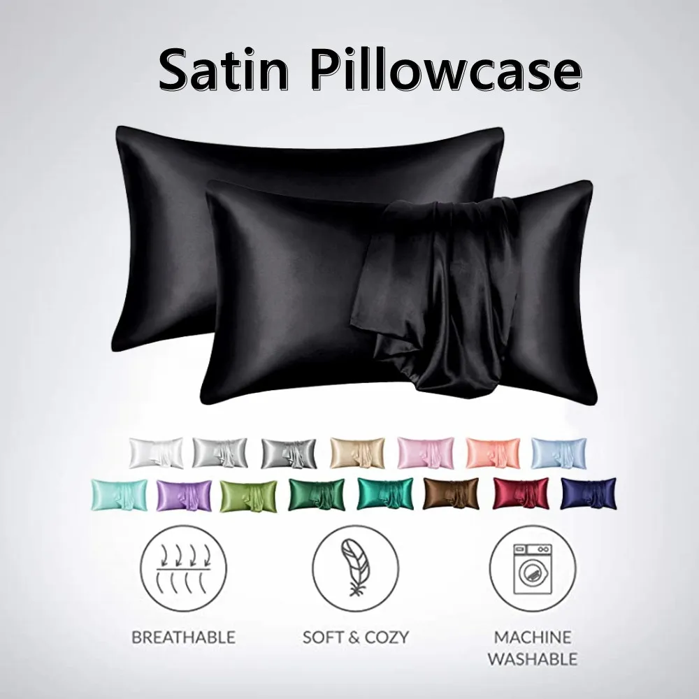 Silky Satin Pillowcase for Hair and Skin Soft and Luxury Pillow Cases Covers with Envelope Closure Queen King Standard Size