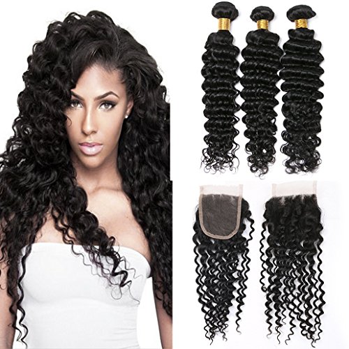 Brasiliana dei capelli Onda profonda Bundle con chiusura al 100% capelli umani, nessun animale, No sintetico, può essere Restyle, Raddrizza, Perm o curl, tagliarlo.