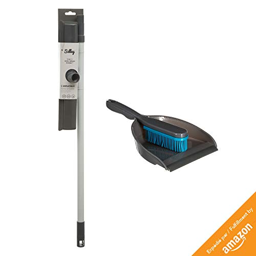 Silley - Scopa 3 in 1 (raschiare, spazzare, e spazzolare), in gomma, con manico rotondo e telescopico (da 70 a 122 cm), incl. spazzola e paletta, per capelli e peli di animali, all'interno e all'esterno, compatibile con mattonelle, parquet, moquette, vinile, tappeti, cemento, piastrelle, ecc.