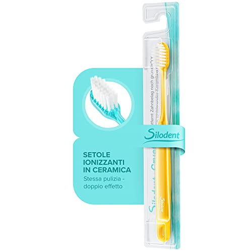 Setole in ceramica: le setole dello spazzolino Silodent Crystal sono realizzate in ardesia al quarzo naturale della prefettura di Aichi in Giappone. Questa nano-ceramica viene spruzzata così finemente che i denti e le gengive sono completamente puliti.