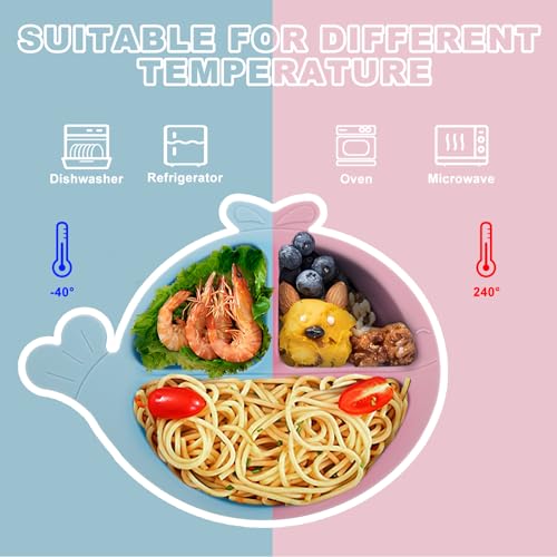 Design Scientifico: le potenti ventose sul fondo dei piatti e delle ciotole per bambini possono essere fissate su qualsiasi superficie piana, senza preoccuparsi che macchino il pavimento o cadano. Il piatto svezzamento con ventosa contiene tre scomparti per conservare alimenti diversi senza mescolare i sapori. Il bavaglino ha 4 misure regolabili per renderlo comodo per bambini di diverse età, e la tazza ha una cannuccia antisoffocamento per rendere l'acqua potabile più sicura per i bambini.