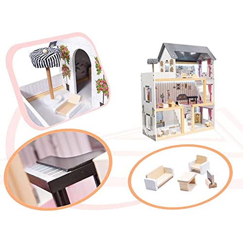 SILUK Casa delle bambole in legno, casa delle bambole con mobili e accessori, casa giocattolo per ragazze (Cottage)