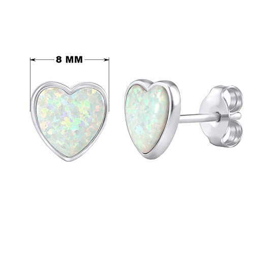 SILVEGO Orecchini da Donna in Argento 925 Cuore con Opale Bianco Sintetico, LPS0857W