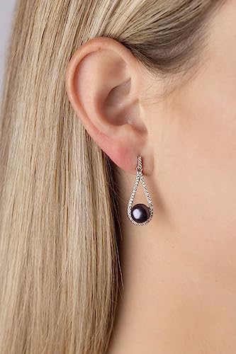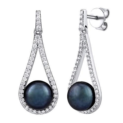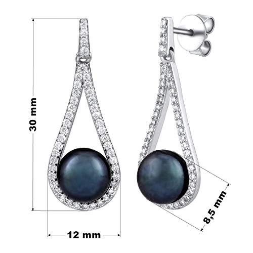 SILVEGO Orecchini da Donna in Argento 925 con Vera Perla Nera Colore Tahiti Orecchini Pendenti 3 cm, GRP19233B