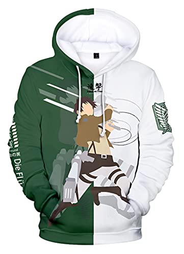 Silver Basic Anime Giacca a Manica Lunga Stampa Anime Levi Hoodie Moda Uomo Donna Maglia,#Verde Bianco Eren-3,XL