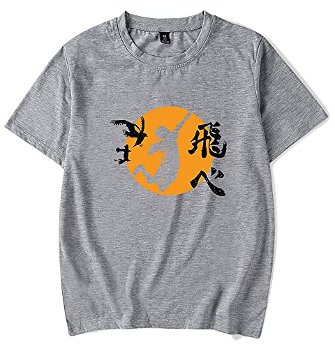 Silver Basic Anime Volleyball!! Karasuno High School Volleyball Club Costume Sportivo Maglietta Corte per Bambini,Grigio Fly High Arancione-2,XL