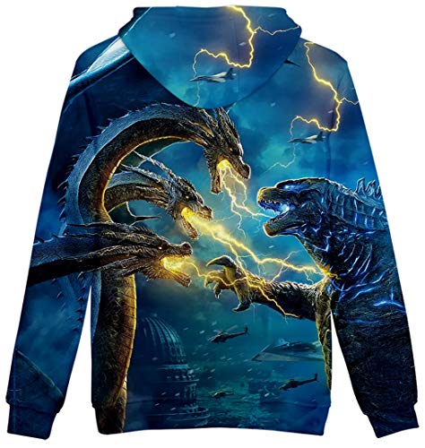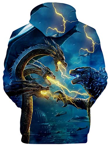 Silver Basic Felpa con Cappuccio Stampato Film dei Mostri Gojira Godzilla vs Kong Uomo Felpe con Cappuccio,Blu 3514-3,4XL