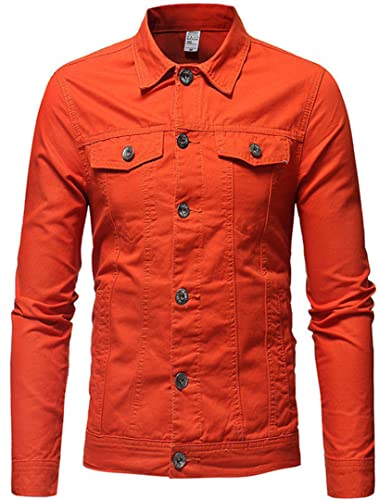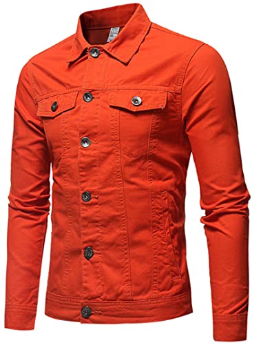 Silver Basic Slim Giacca di Jeans Uomo Rider Jacket Giacca in Denim Motociclista con Tasche Manica Lunga,Rosso-2,M