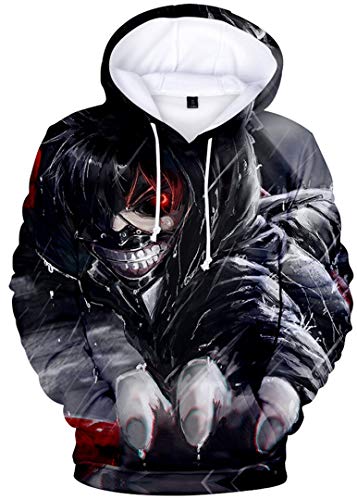 Silver Basic Unisex Felpa Ghoul Anime con Cappuccio Manica Lunga Sweatshirt 3D Stampata Pullover,Modello E-1,XXS