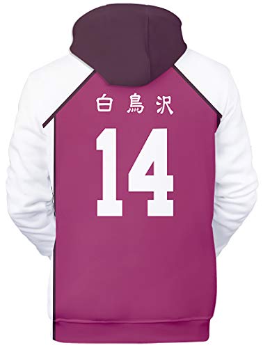 Silver Basic Unisex Volleyball!! Maglia Cosplay Kageyama Bokuto Felpa con Cappuccio Vintage Hoodie,Shiratorizawa #14-4,L