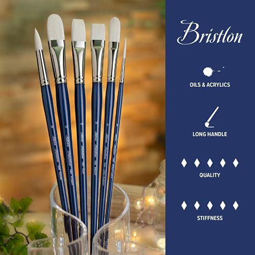 Silver Brush Bristlon-Pennello Rotondo con Manico Lungo, con setole Sintetiche, Colore Blu Cobalto, Taglia 0