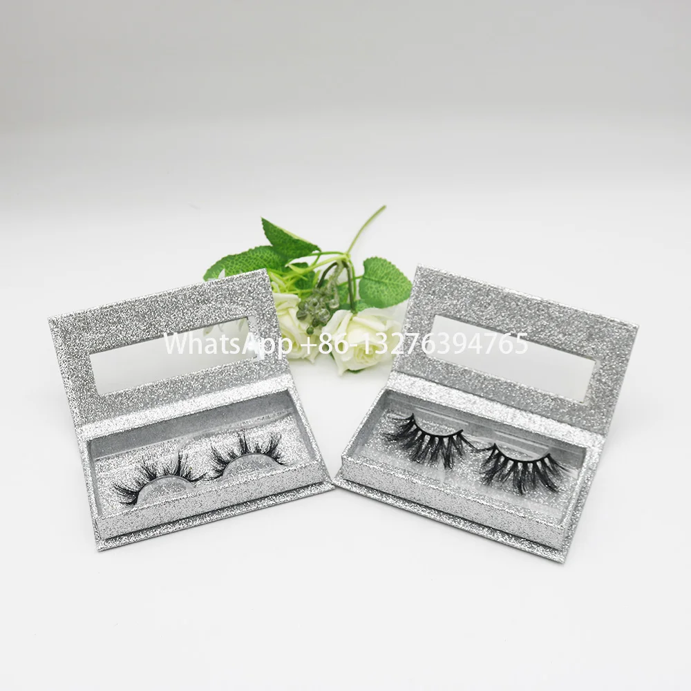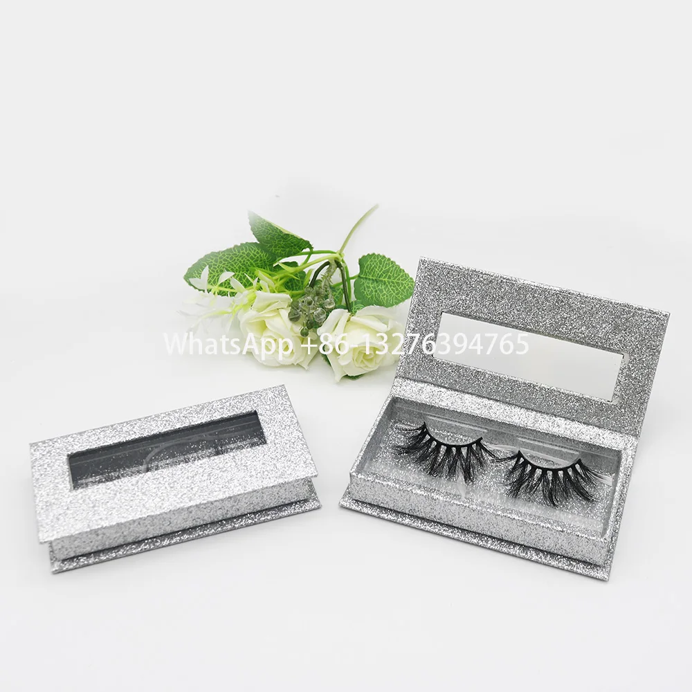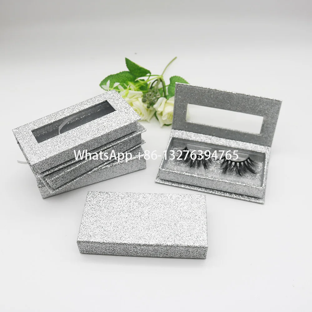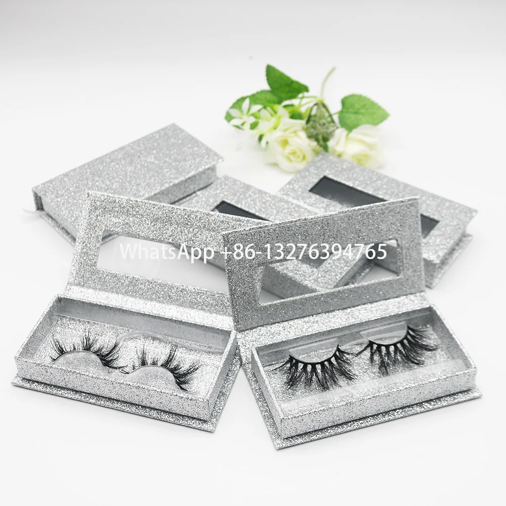 Silver Glitter Rectangle Eyelash Packaging Box Real 5D 25mm Crisscross Mink Eyelashes Custom Lash Package with Your Logo