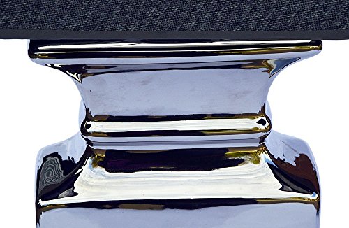 Base: ceramica, argento plated. Paralume: esterno in tessuto nero, interno in PE bianco.