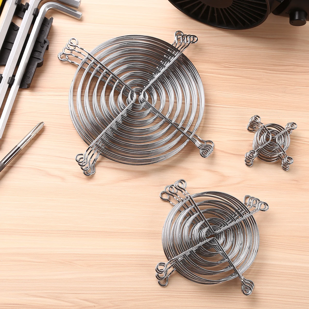 5Pcs Silver Tone Metal Wire Finger Guards Cooling Fan Grill Protector Protective Cover for PC Ventilator Fan CPU Grill Protector