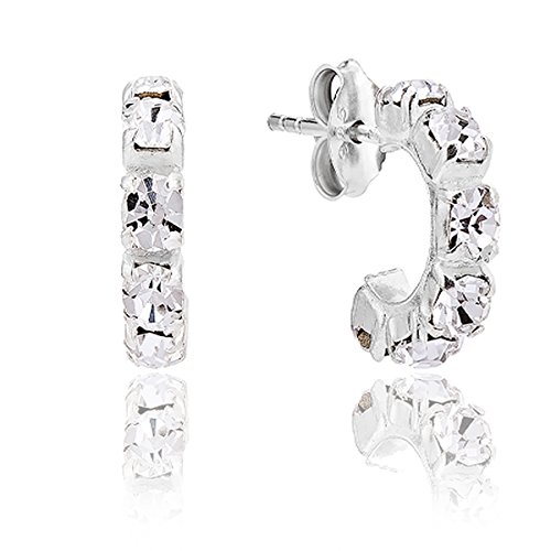 DTP Silver - Orecchini Creoli a Semi Cerchio - Argento 925 con Cristalli Swarovsky - Diametro 12 mm - Colore Chiaro/Trasparente