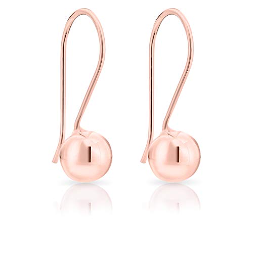 DTP Silver - Orecchini da donna pendenti con Palla/Sfera - Misura 6 x 19 mm - Argento 925 Placcato in Oro Rosa 18K