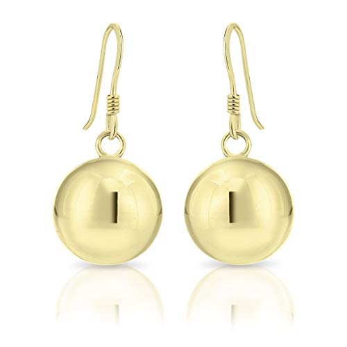 DTP Silver - Orecchini da donna pendenti con Palla/Sfera - Misura 12 x 27 mm - Argento 925 Placcato in Oro 18K
