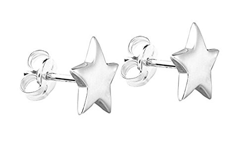MSQ Silver - Orecchini a Perno a Forma di Stella, in Argento Sterling, Misura 3 mm