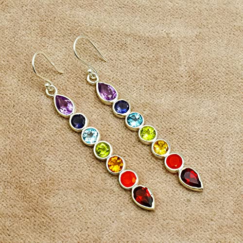Silver Palace Orecchini Pendenti da Donna in Argento Sterling 925 con Pietra di Chakra Naturale