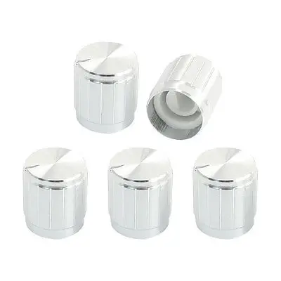 5pcs Silver Tone 6mm D Shaft Insert Dia. Potentiometer Rotary Switch Knob Cap